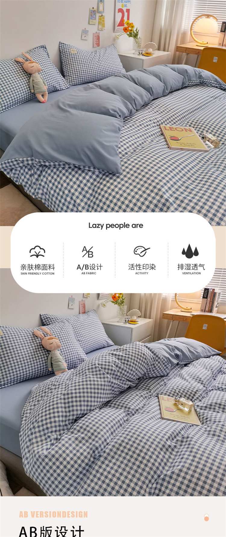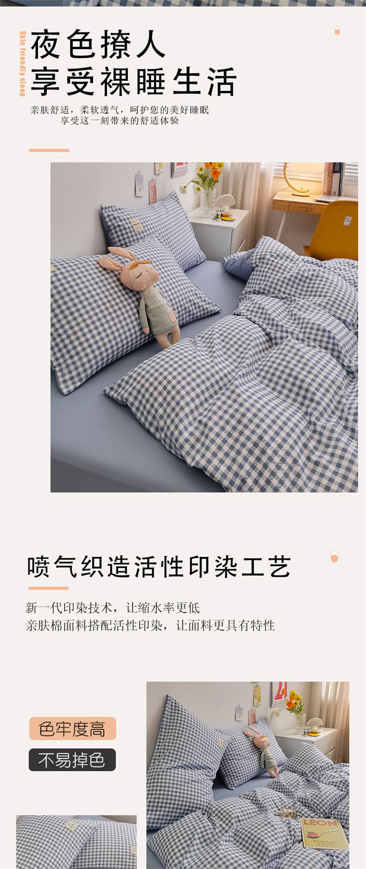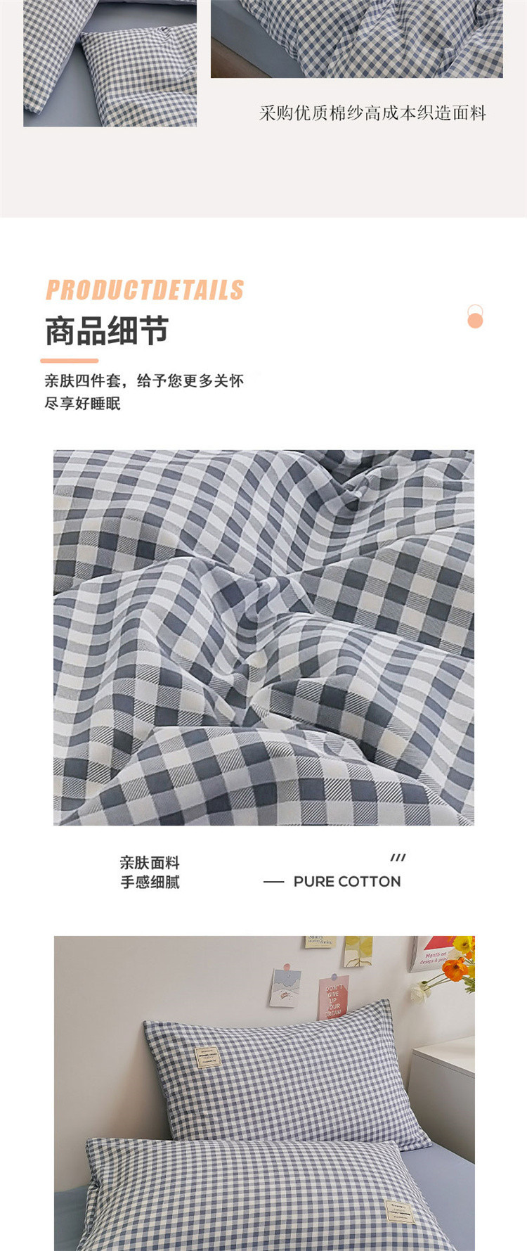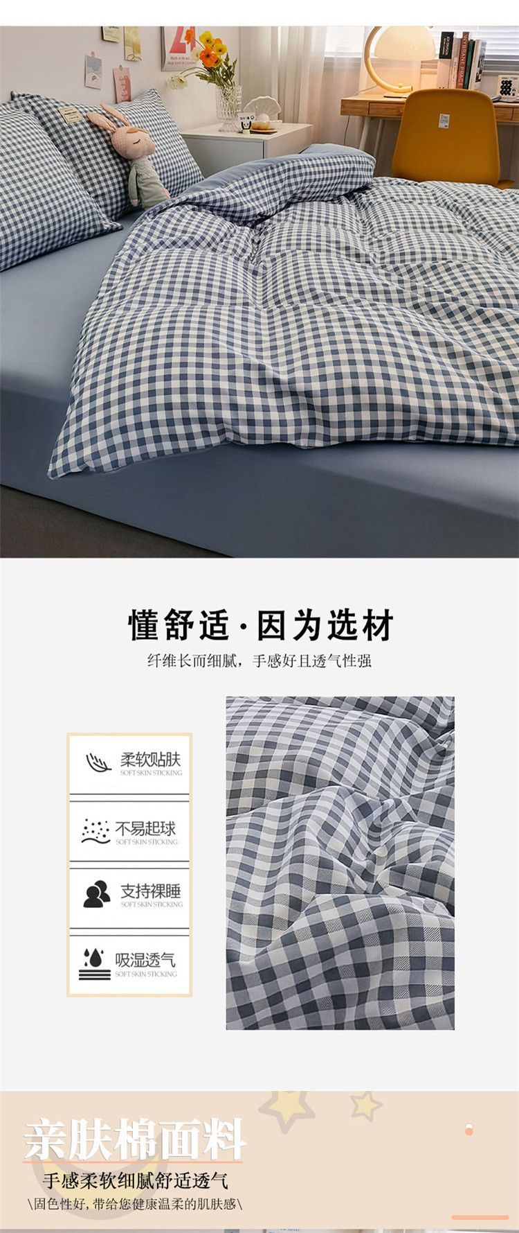 洁丽雅(GRACE)良品日式小清新床上水洗棉四件套床单被套床品格子三件套