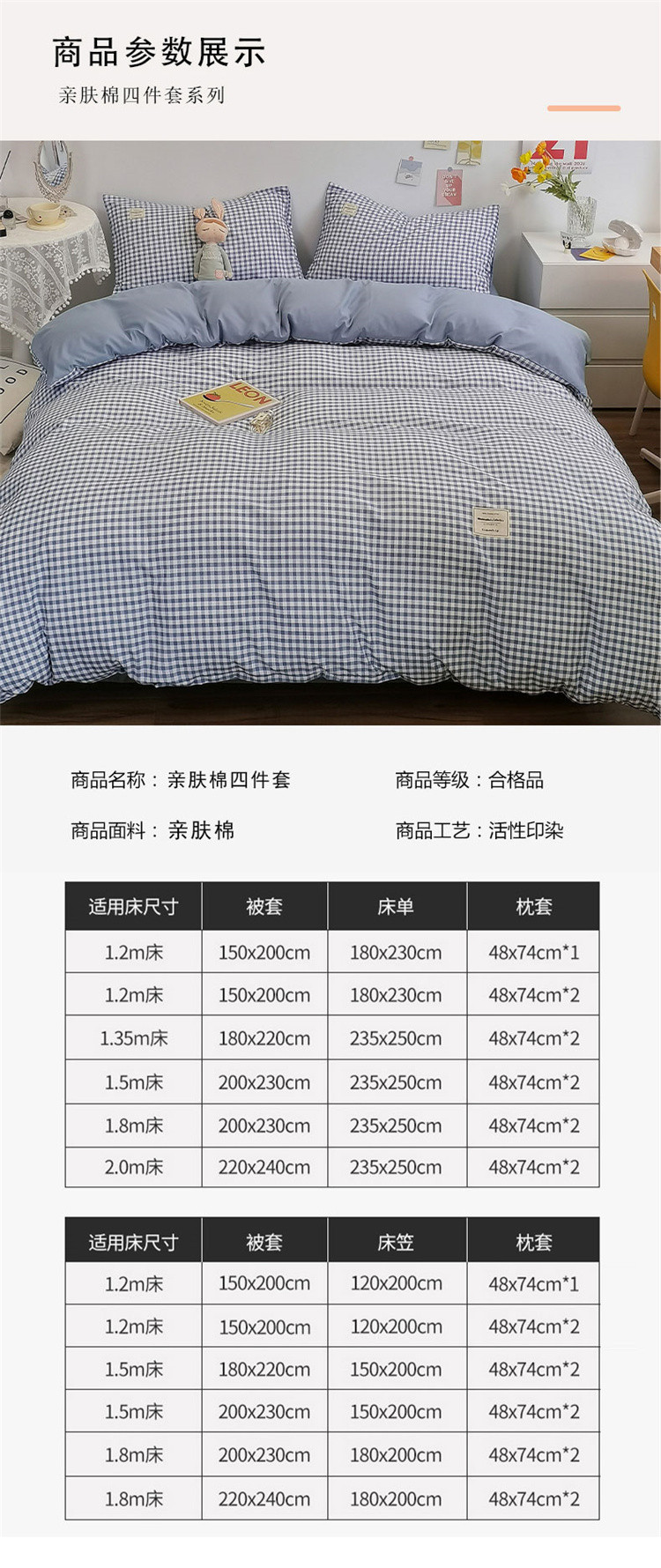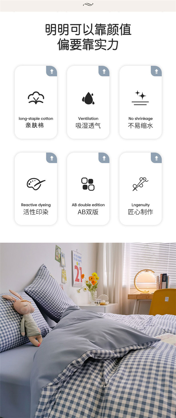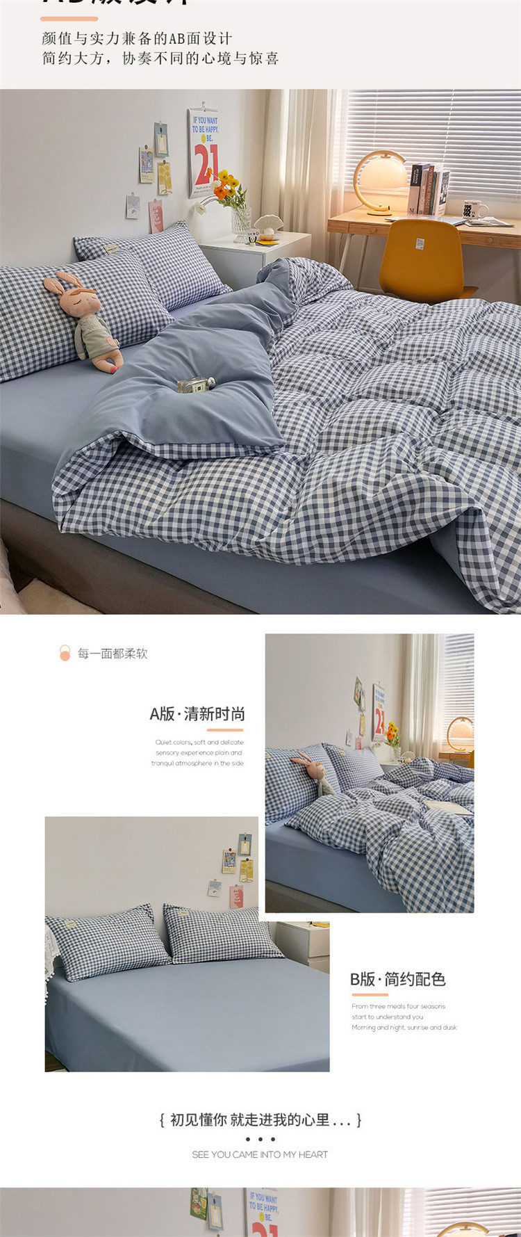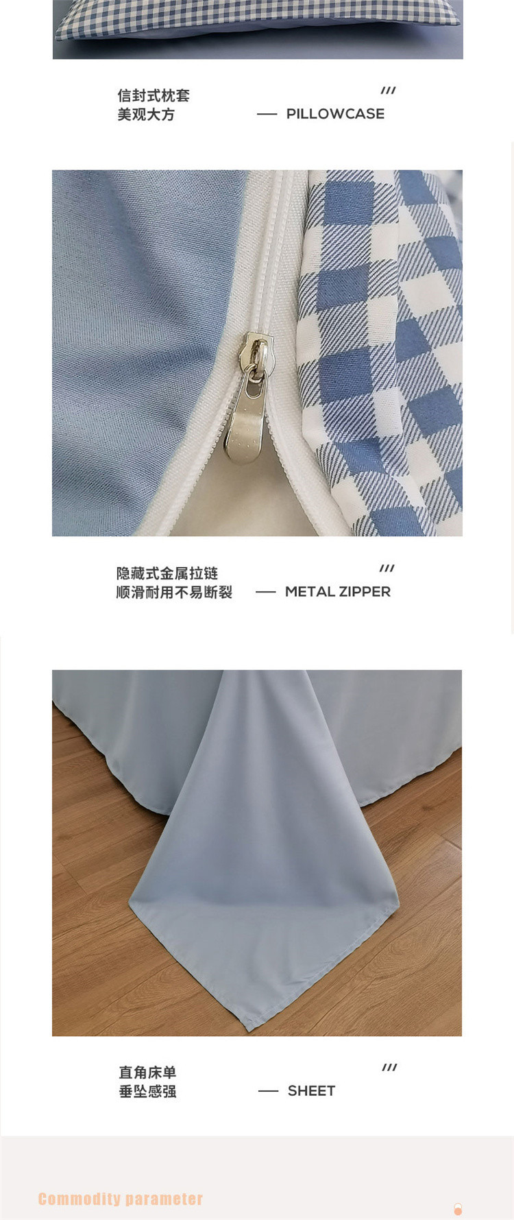洁丽雅(GRACE)良品日式小清新床上水洗棉四件套床单被套床品格子三件套
