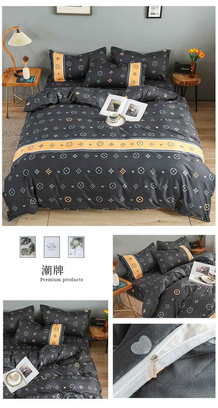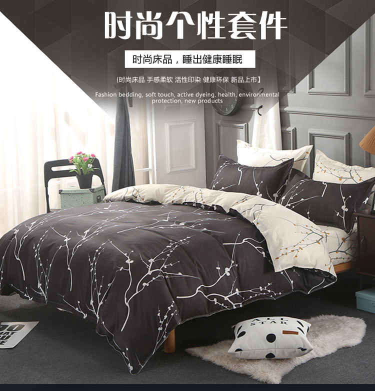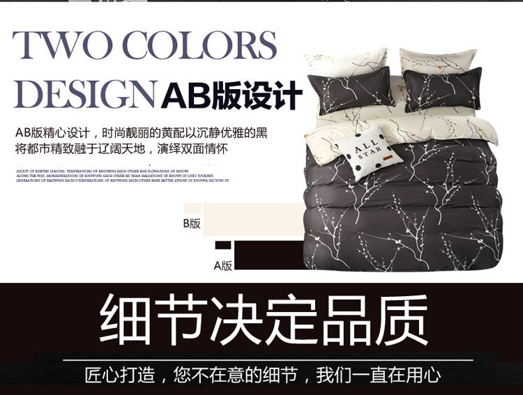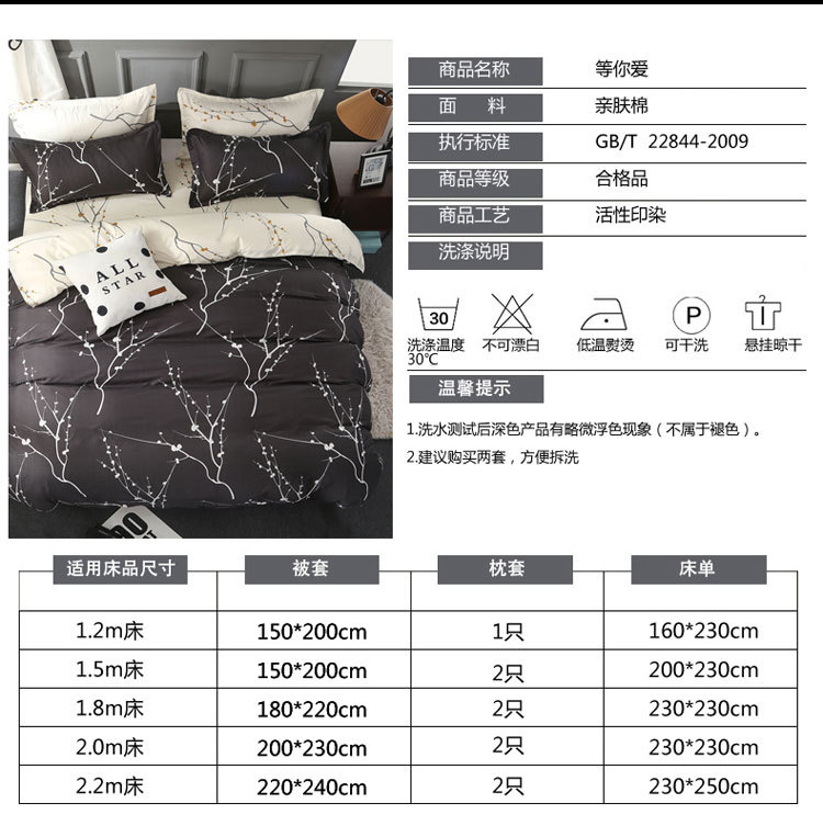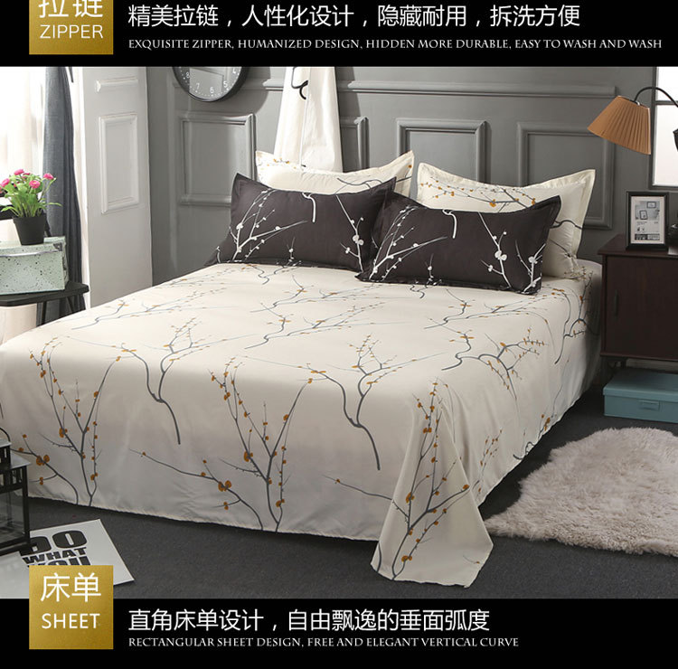 洁丽雅(GRACE)磨毛实体简约风四件套芦荟棉被套床单三件套