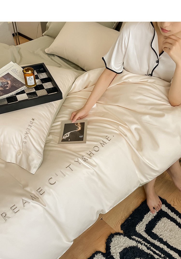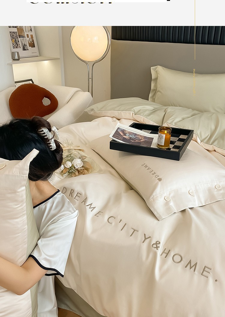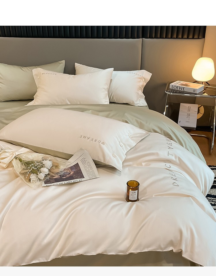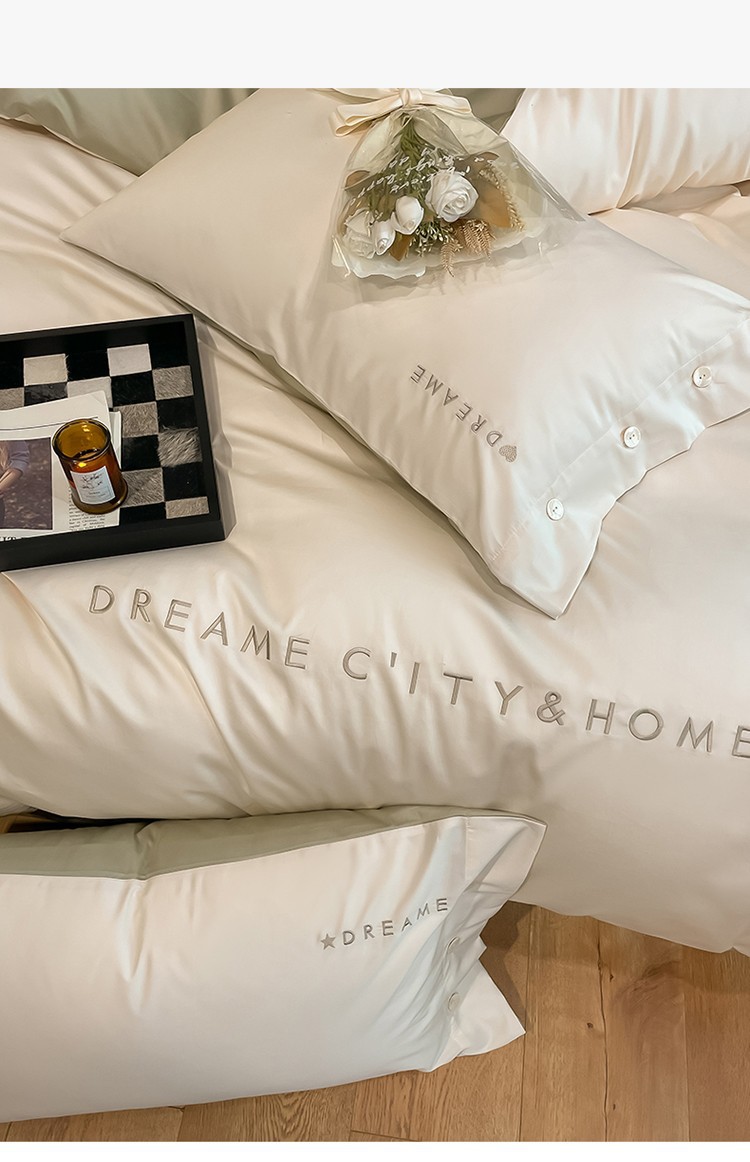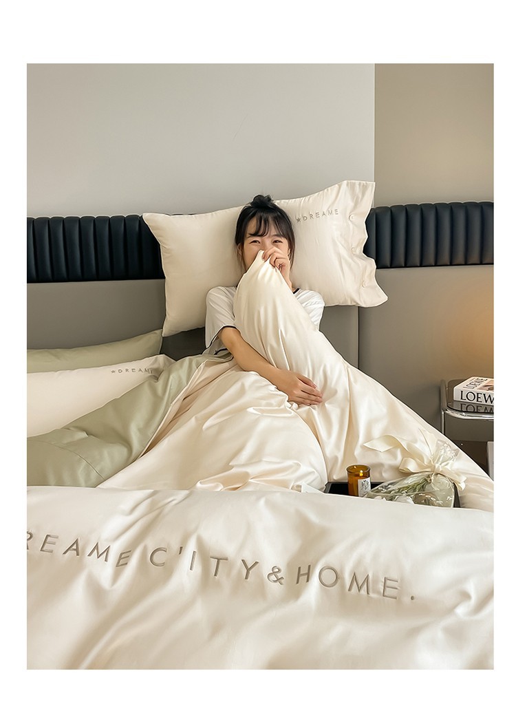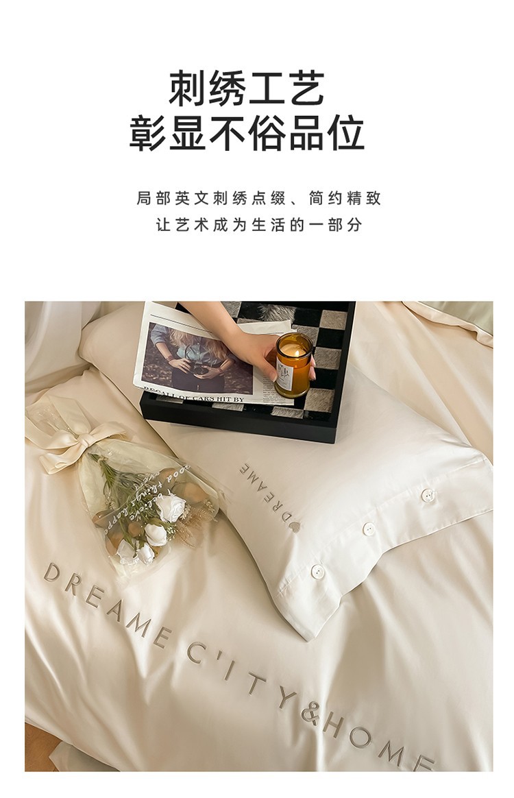 洁丽雅(GRACE)60S支长绒棉纯棉床上四件套全棉100轻奢高级感纯色绣花床品被套