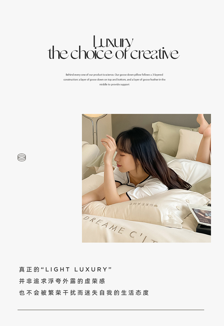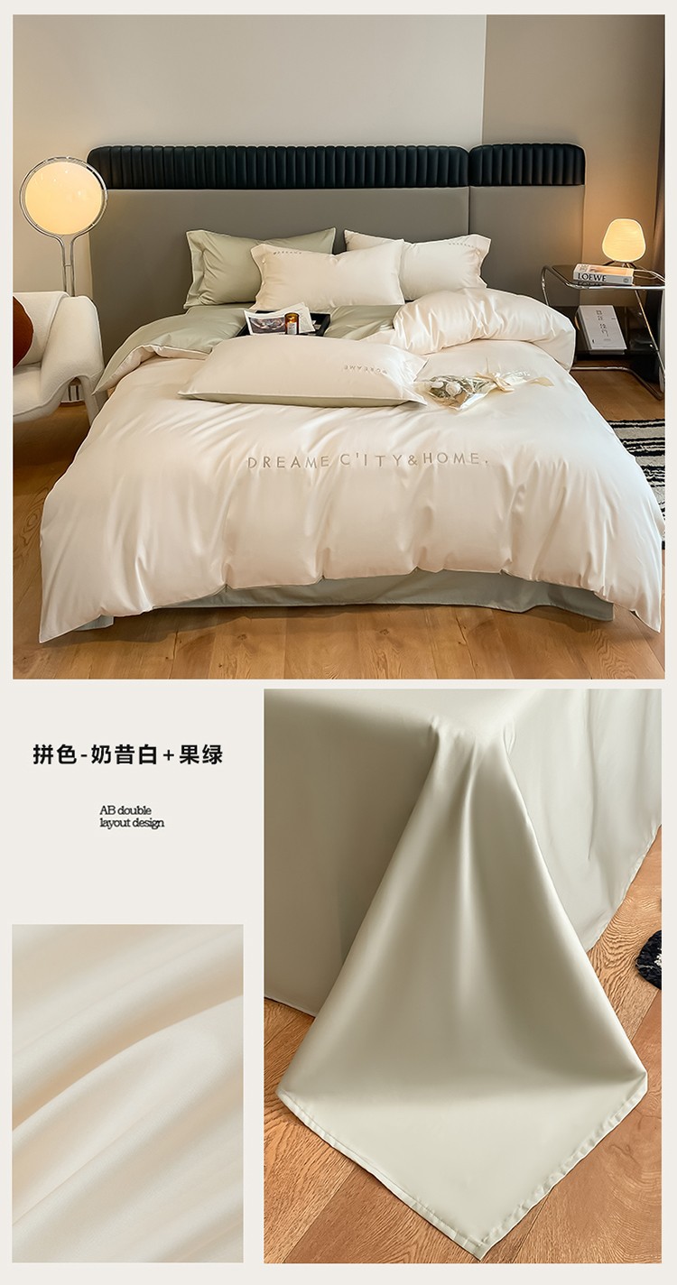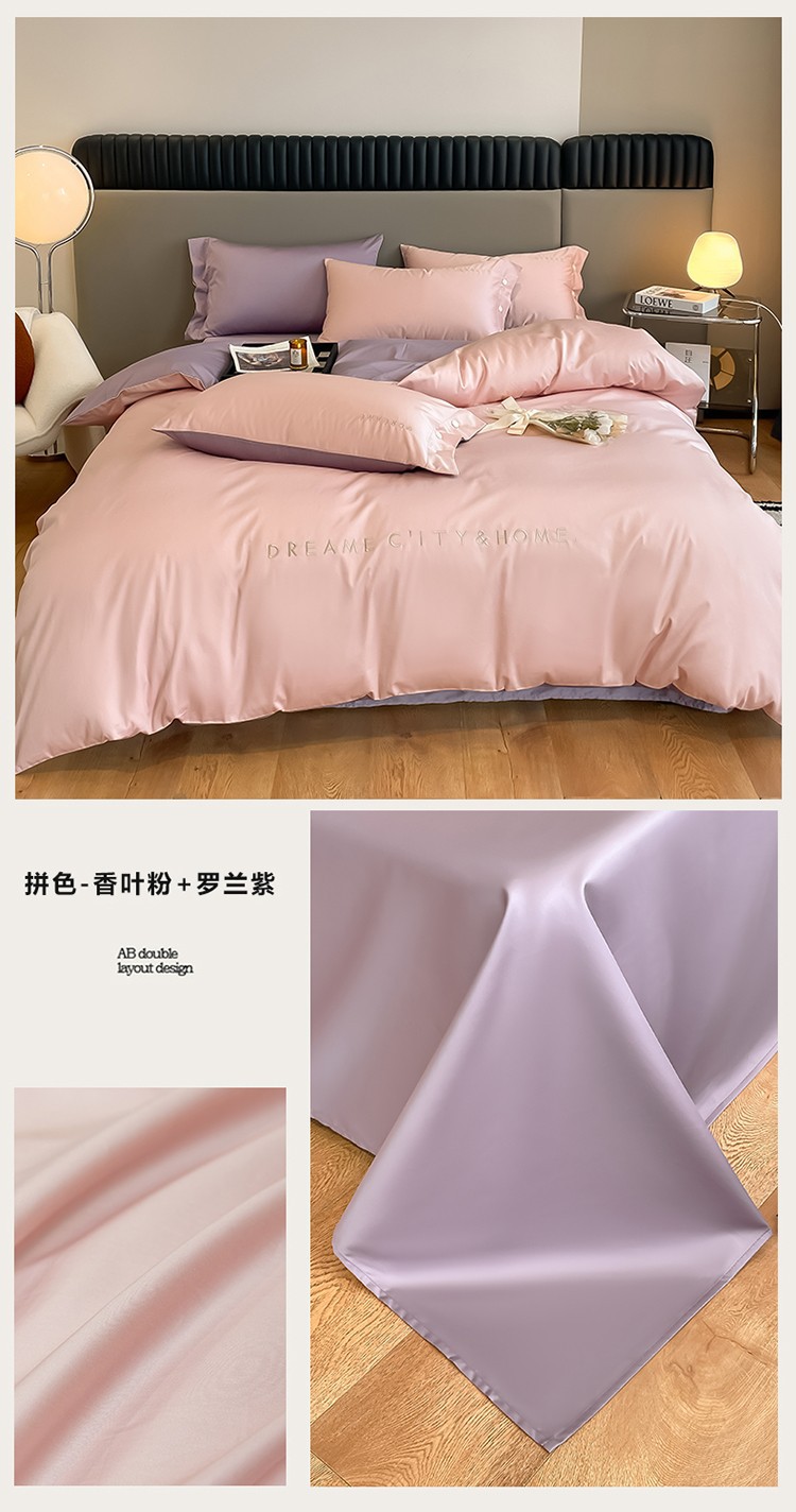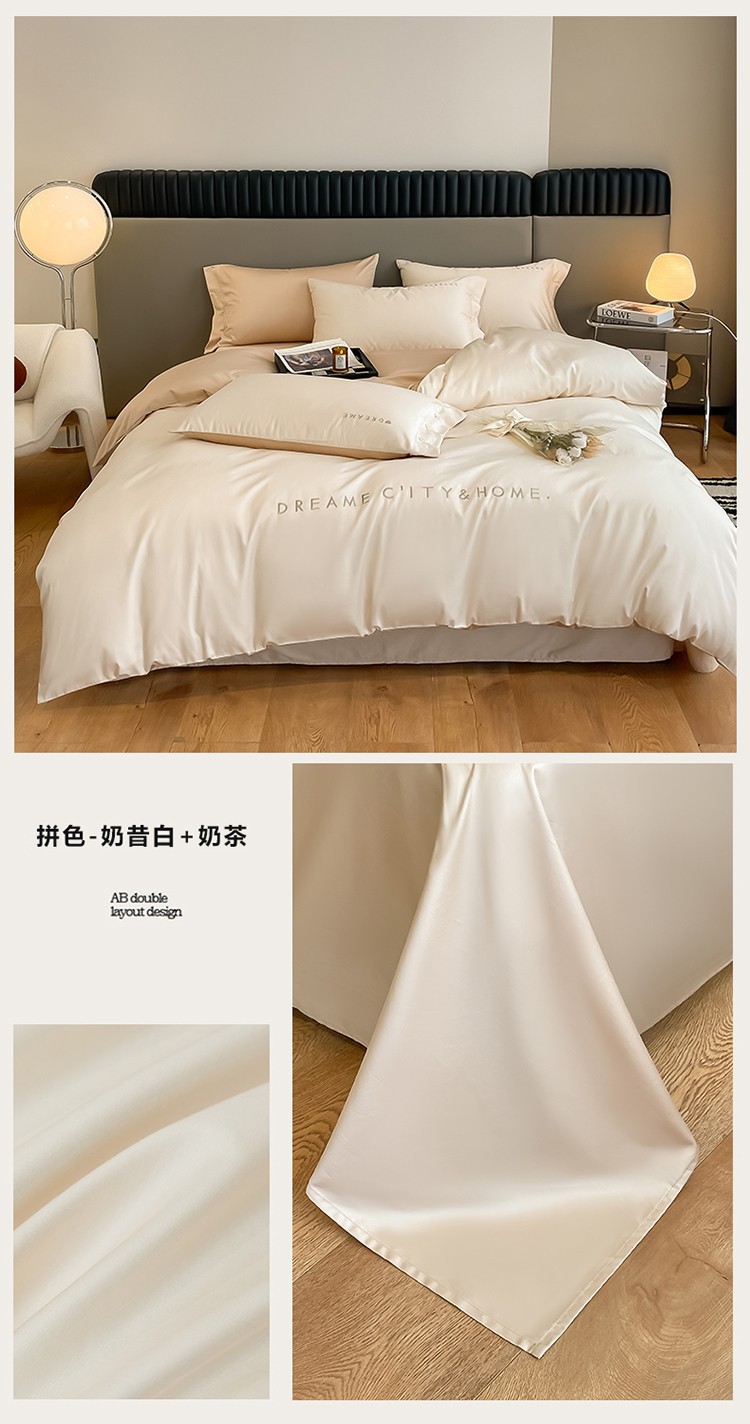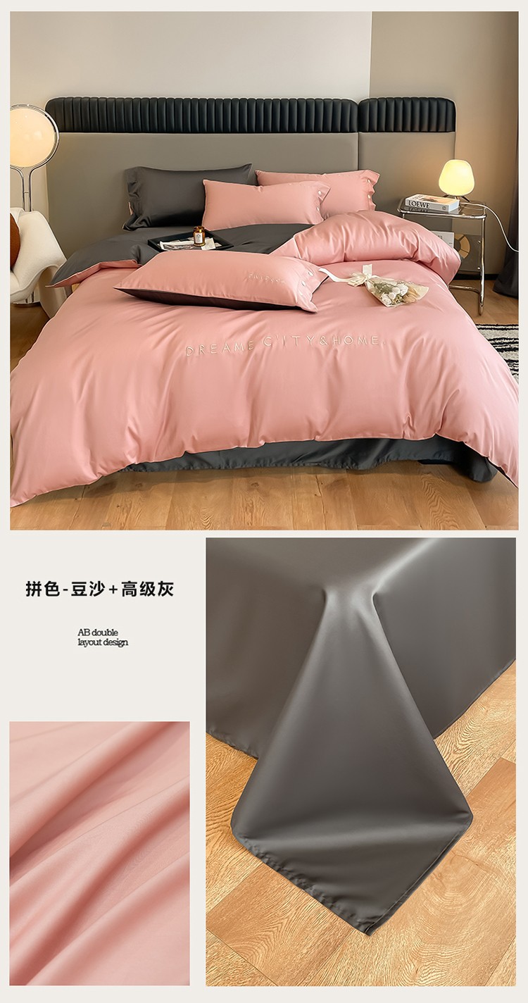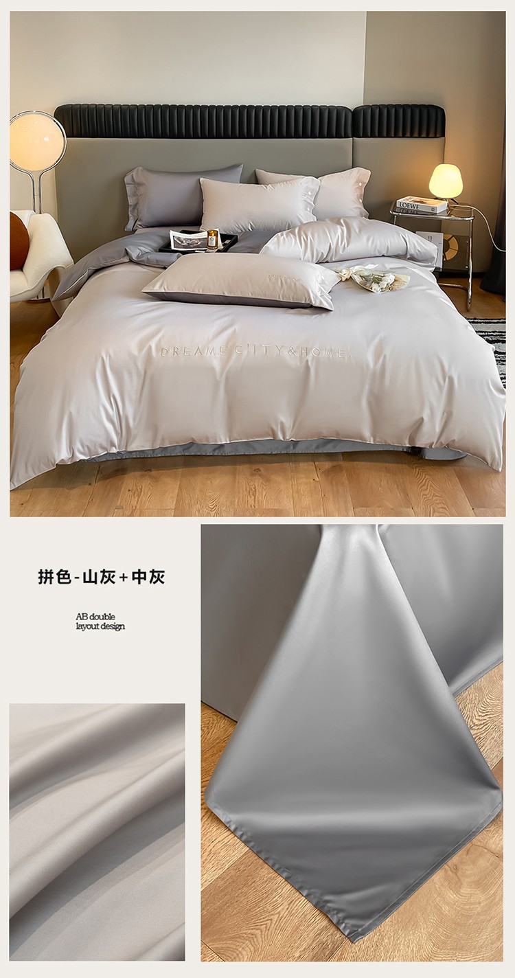 洁丽雅(GRACE)60S支长绒棉纯棉床上四件套全棉100轻奢高级感纯色绣花床品被套
