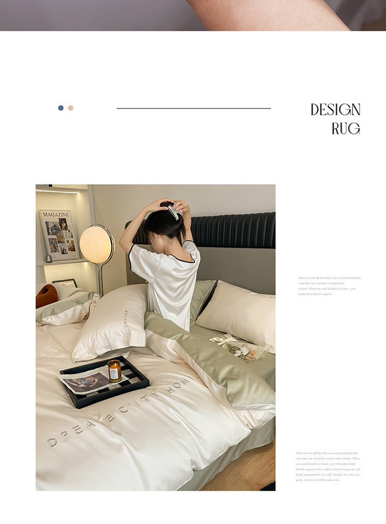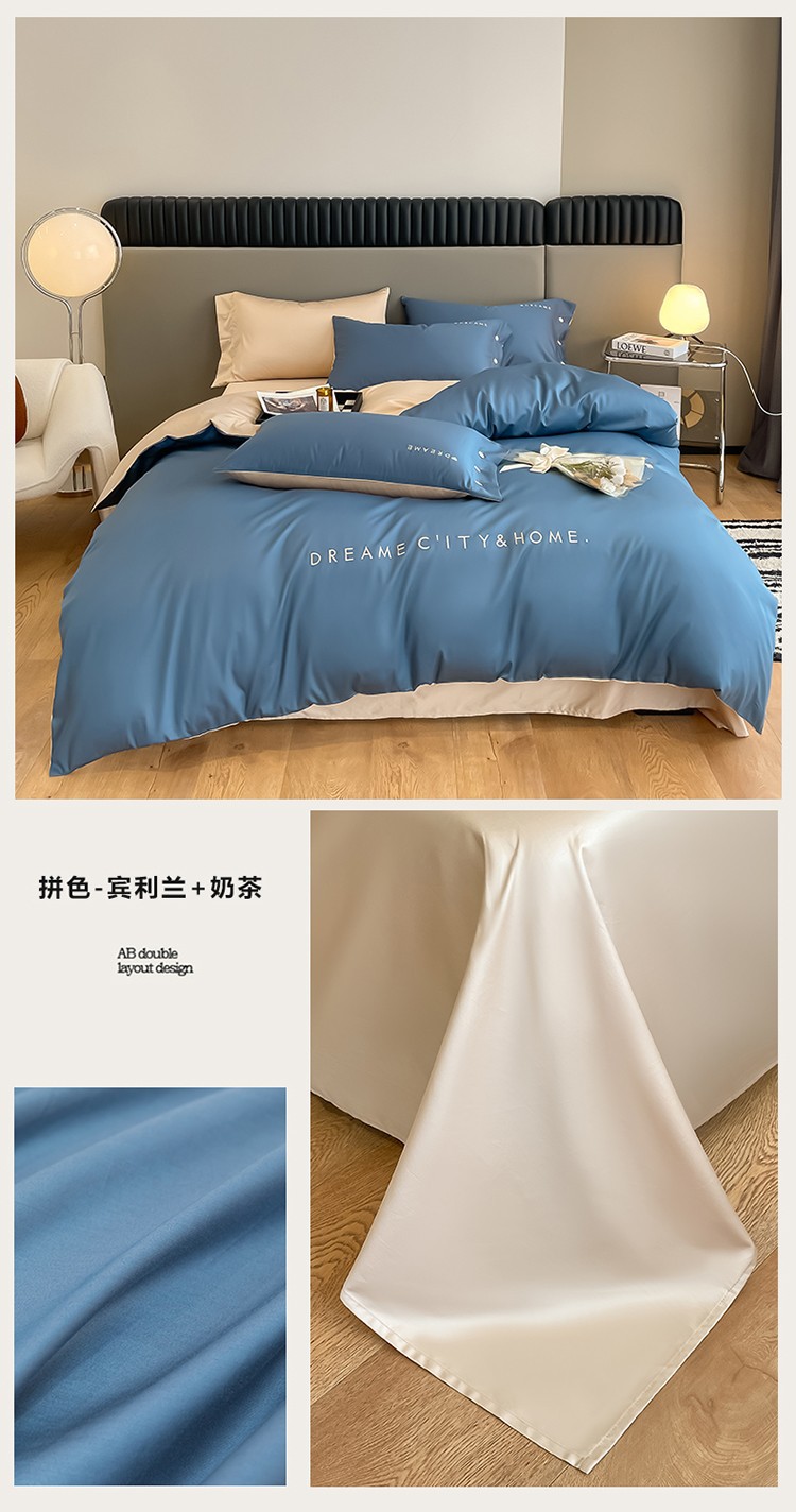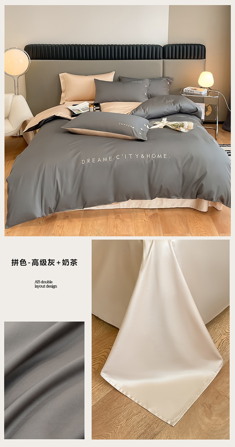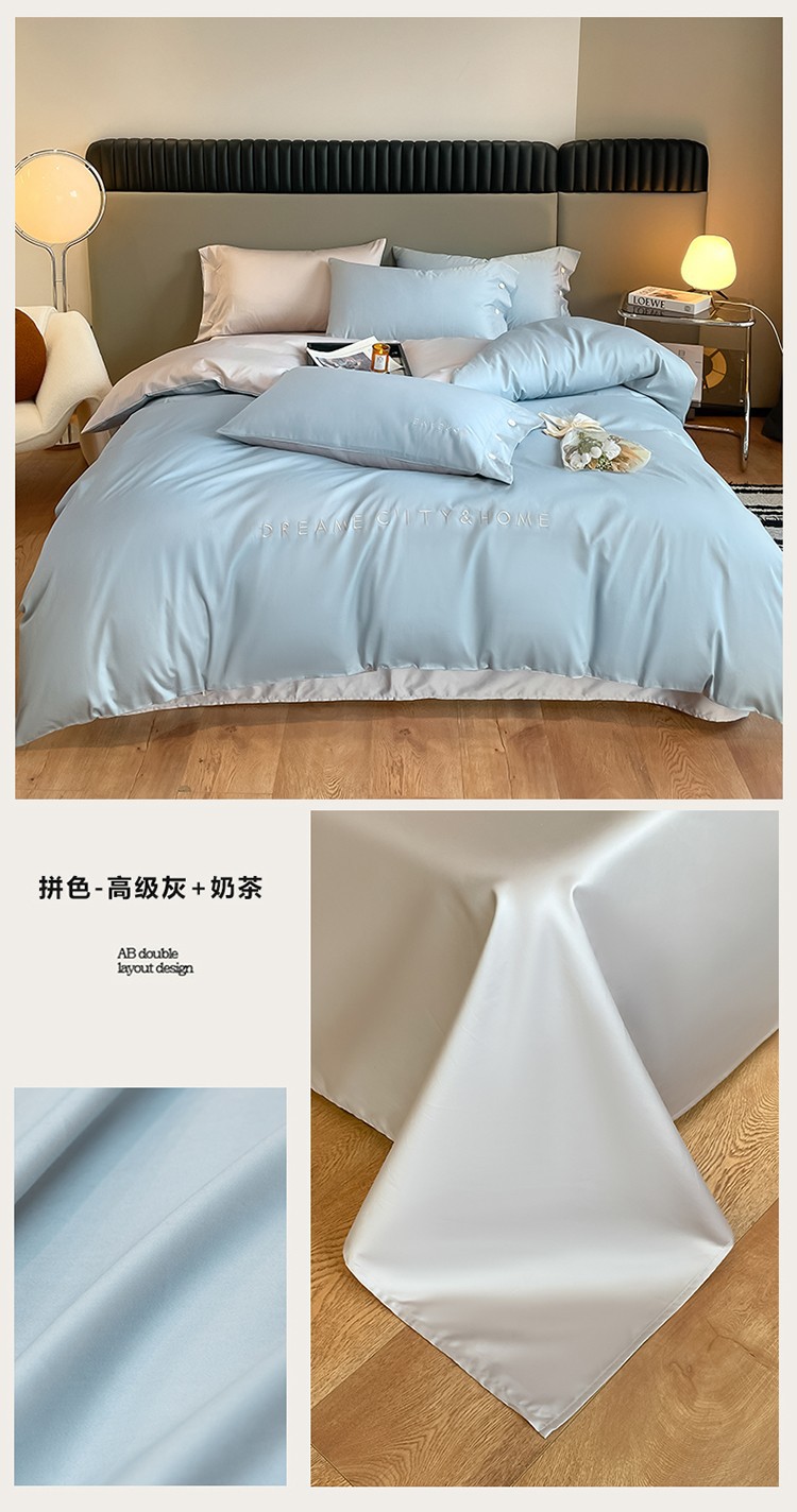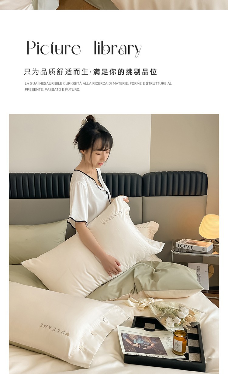 洁丽雅(GRACE)60S支长绒棉纯棉床上四件套全棉100轻奢高级感纯色绣花床品被套
